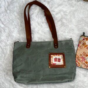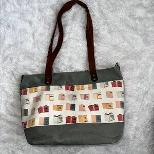 Handmade Book Lover Tote Bag w/ Pouch Canvas Book Print Travel Shoulder Bag