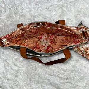 Embark on literary adventures with this charming book-themed tote bag, complete with a coordinating floral pouch! Perfect for the avid reader or student, this delightful tote features a whimsical book print design on durable canvas, accented by stylish gray panels and rich brown leather-like straps. The spacious interior, adorned with a complementary floral lining, provides ample room for books, notebooks, or everyday essentials. An included zippered pouch helps you keep your small accessories organized and accessible. Ideal for carrying your favorite novels to the library, adding a touch of bookish flair to your campus style, or showcasing your love for literature on weekend outings.