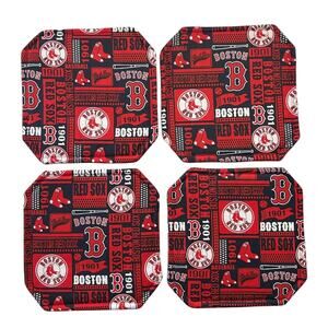 Handmade Boston Red Sox Hot Mats Trivet Set of 4 8" x 8" Baseball MLB Gift. Perfect for the Red Sox fan in your life! Washable cotton fabric with interior batting. Ideal to go under any hot dish on your dining room table. Fast shipping.