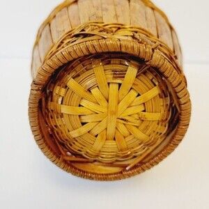 Handmade Bottle Neck Wicker Basket. Beautiful pattern with many different weavings. Intricate design. Very good condition.