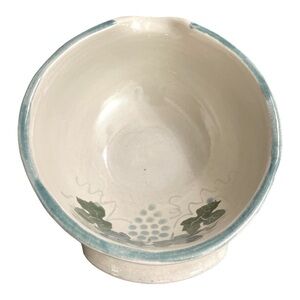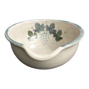 Handmade Bowl w/ Grape vines/ leaves. Singed by artist. Handle/ lip for pouring
