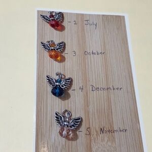 Five angel birthstones are available. Choose the one you want before ordering - January, July, October, November, December - contact me for availability.