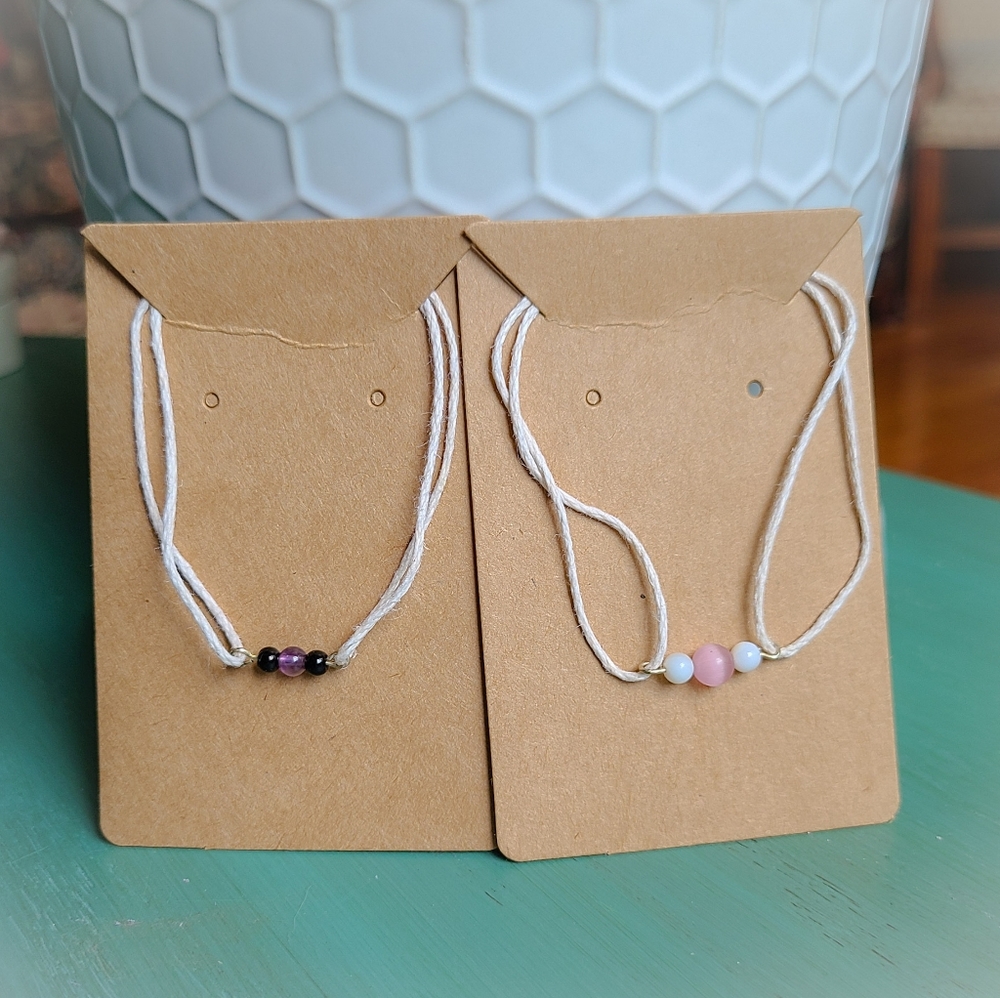 Two handmade bracelets made with embroidery floss and glass beads. I can adjust them to make them a little bigger if necessary. :)