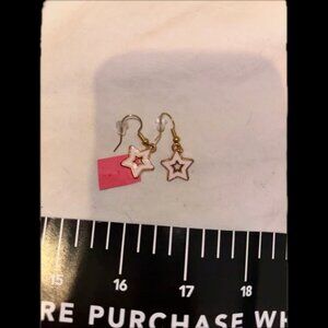 Charming star-shaped earrings from Neiman Marcus. Features gold-tone metal with white enamel accents. Perfect for adding a playful touch to any outfit.