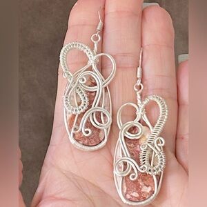 Handmade Brecciated Jasper Wire Wrapped Large Oval Earrings