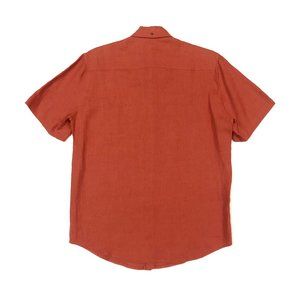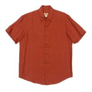 Handmade Bright Red-Orange High Quality Linen Short Sleeved Button-up, Medium