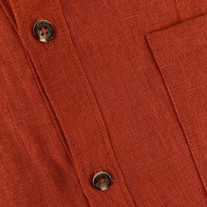 This rust linen button-up is a great piece for a hot summer day. It's lightweight, sturdy and has a nice drape. This shirt would suit anyone's minimalist needs.