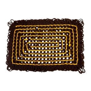 Handmade Brown & Yellow Knit Crochet Placemat Set of 2 MCM Retro Lot Centerpiece
