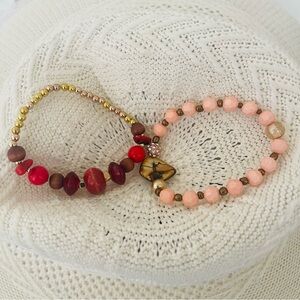 Handmade 2 bracelets Mix materials, plastic glass mother of pearl