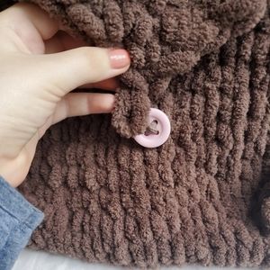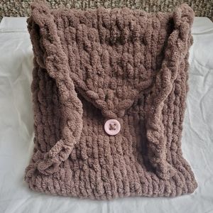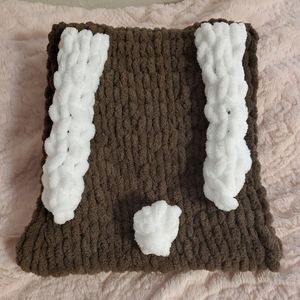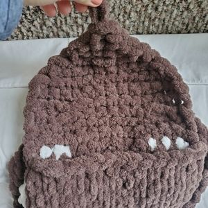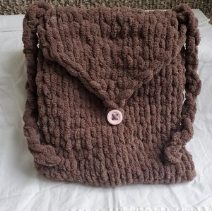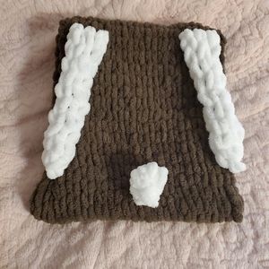 🐇 Adorable and so soft! This brown backpack is great for lightweight use by kids. Has adorable white bunny ears and a fluffy tail. Pink button and loop closure, and brown backpack straps. I made this with ages 5-12 in mind. This of course is subject to the size of the child. Bag measures 11 inches wide by 12.5 inches tall. Bag is stretchy and malleable.