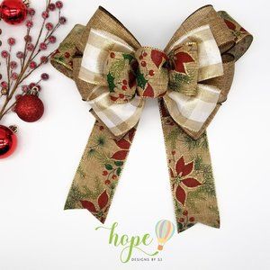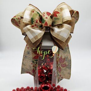 Handmade Burlap Christmas Bow for Lantern, Wreath, Tree, Gift, Centerpiece.