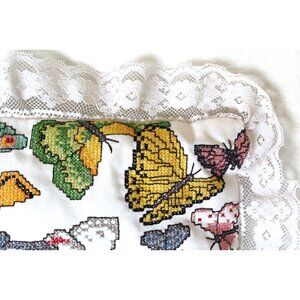 Handmade Butterflies Needlepoint Pillow cross stitch Multicolor Lace edges