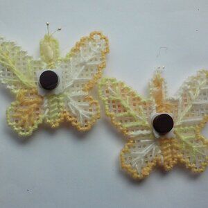 Handmade Butterfly Magnets 2 Yellow and White 3 1/2" x 3 1/2"