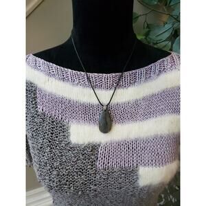 Handmade By Minuche Sweater Mohair Large Gray Purple Knit Short Sleeve Boat Neck