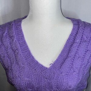 Handmade Cable Knit Sweater Vest Sleeveless V-Neck Overlap/Cross Detailed top