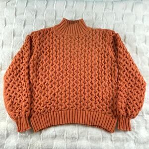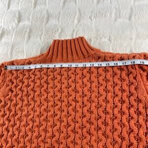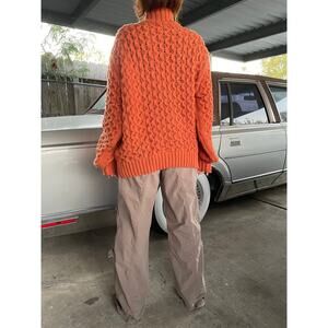 🔥Handmade Cable Knit Turtleneck Orange Pullover Cabin Cottage Retro Chic Sweater