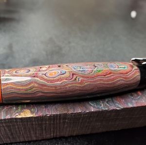 This is a Motorcycle Kickstart pen kit with a body made fordite (layered paint) from the Cadillac ranch!!! This is a rare piece with burls and amazing retro colors!