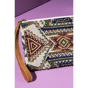 Handmade Cairo Western Boho Ethnic Pattern Beaded Jacquard Wristlet Clutch
