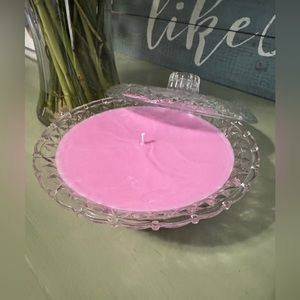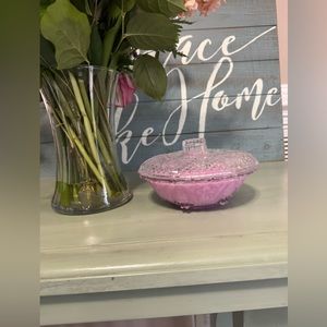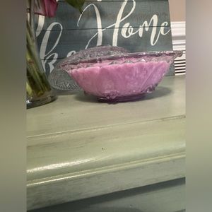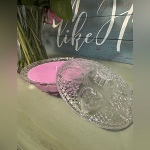 Made in a vintage glass candy dish with lid. Great accent piece. Rose scented. Great one of a kind gift with multiple purpose dish
