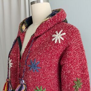 Handmade Cardigan Hoodie Sweater Wool Boho Hippie Multicolor Zip Chunky Red Blue
