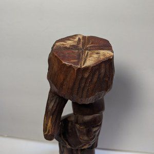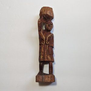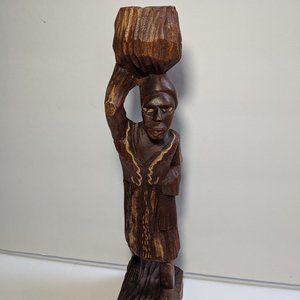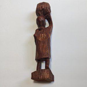 Handmade Carved African Black Woman Carrying a Basket Wood Statue Native Decor