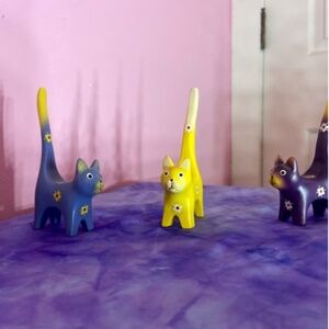 Handmade Cat Trio ๐ฑ Ring Display Colorful Floral Jewelry Accessory Stand