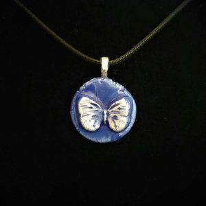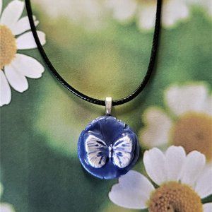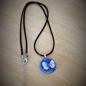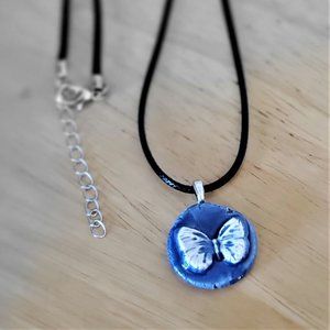 Handmade Ceramic Blue Butterfly Pendant Necklace