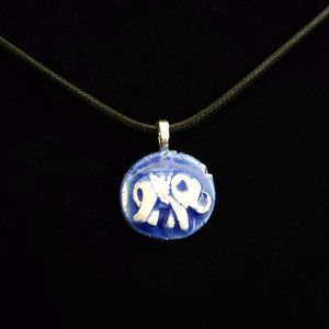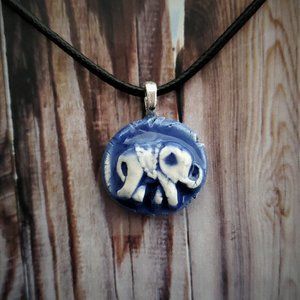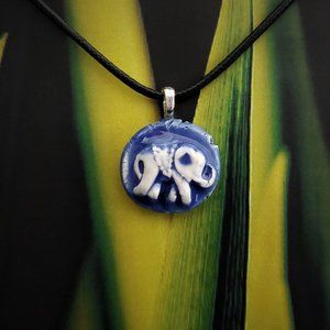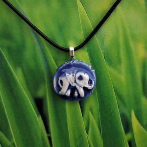 Handmade Ceramic Blue Elephant Pendant Necklace