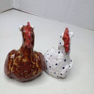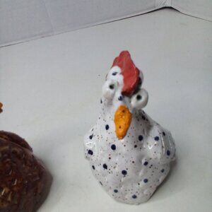 Handmade Ceramic Chicken Rooster Decor 4" Whimsical Big Eyes Lot 2 Countrycore