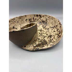 Handmade Ceramic Chip Dip Bread Oil Plate Speckled Brown Pottery Swirl