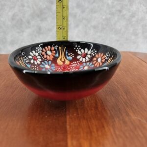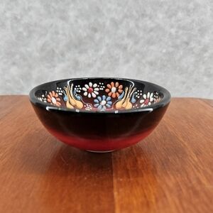Handmade Ceramic Folk Art Decorative Dipping or Trinkit Bowl Red Black Floral