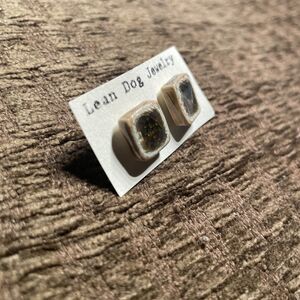 Handmade Ceramic & Glass Earrings Stud Post plug Brown white Square Cube