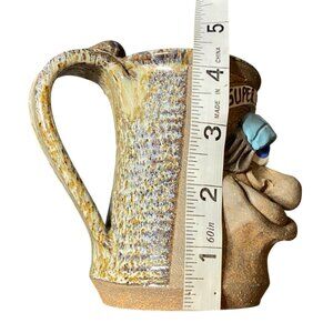 Quirky mug featuring a hand-sculpted skier with a blue hat, adding a unique touch to your drinkware collection.