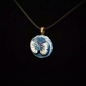 Handmade Ceramic Persian Blue Butterfly Pendant Necklace