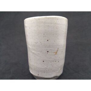 This handmade ceramic cup features a rough like finish and stands 3.5 inches tall. Signed by the artist, it's both functional and a piece of art.