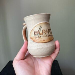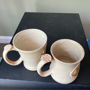 Great pre-owned condition, no defects other than some minor signs of use. I bought these from a rad lady who travelled and sold coffee out of her Volkswagen van. They’re completely unique and lovingly hand made! I’ve never used them, and trying to downsize my mug collection.