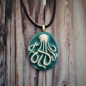 Handmade Ceramic Turquoise Octopus Kraken Pendant Necklace