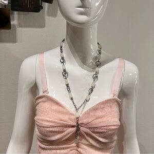 Handmade Chainmail Necklace w/ White Art Glass Beads Charm Pendant