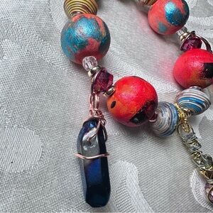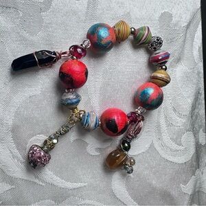 Handmade Charm Bracelet with Hand-Painted Beads & Wire-Wrapped Accents 6-7 3130