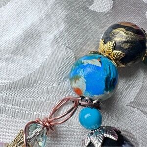 Handmade Charm Bracelet with Hand-Painted Beads & Wire-Wrapped Accents 6-7 3130