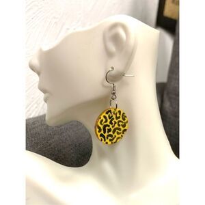 Ladies super cute wooden hand painted cheetah patterned earrings. Excellent condition. New with tags. Lightweight! Made from hypoallergenic nickel and lead free metal.