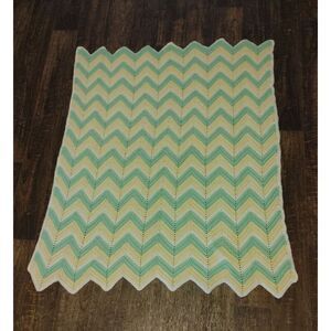 Handmade Chevron Neutral Baby Green Yellow Afghan Blanket 36" X 50". Condition is Pre-owned. Shipped with USPS Ground Advantage.