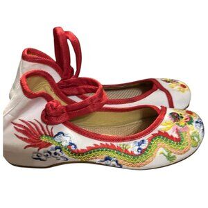 Handmade Chinese Dragon Embroidered Mary Jane Flats Non-Slip Sole Cushioned Fit