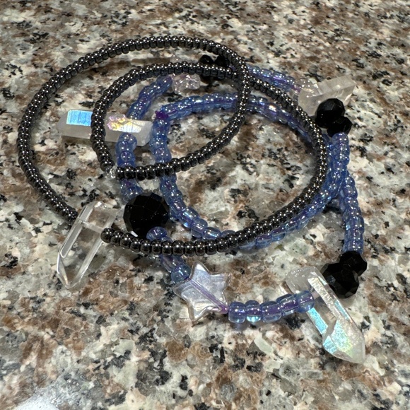 Handmade choker set, tarnish free glass/crystal, auto COMFY against skin you’ll forget it’s there!