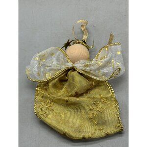 Handmade Christmas Angel tree ornament gold white ribbon snowflakes 5" READ