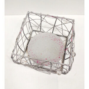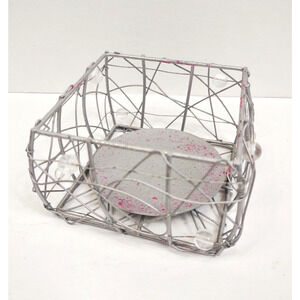 Handmade Christmas Candy Cane Pillar Candle 6oz w Wire Basket Red Holiday
