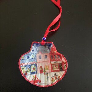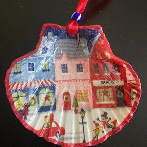 Handmade Christmas Ornament - Decoupaged Scallop Shell
