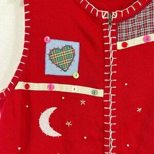 Handmade Christmas Patchwork Zip Sweater Vest Grandma Festive Holiday Party L