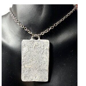 Pendant dimensions approx. 1.5 x 1.25 inches. Chain length approx. 18 inches. Minor imperfections in resin edges, adding to its handcrafted charm.