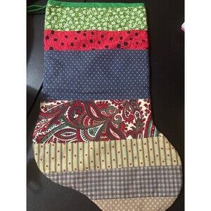 Handmade Christmas Stocking Patchwork Quilt Farmhouse Shabby 17" ANGEL BUTTONS